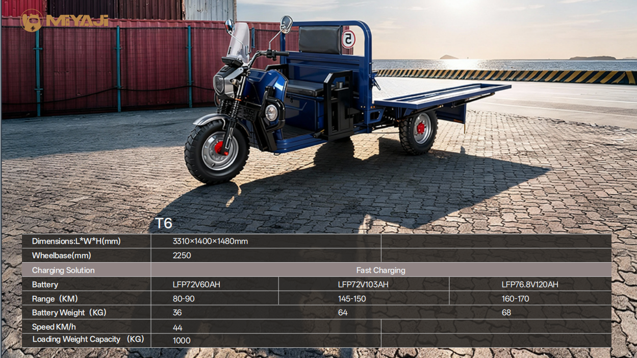 MIYAJI has built a comprehensive new energy solution encompassing "electric passenger transport + personal commuting + intelligent energy replenishment." Its core products include the E5/E6/E7/T6 series electric passenger tricycles, BOX/JF005/U2 L3 electric two-wheelers, as well as the CP series fast charging stations and CB series battery swapping cabinets.