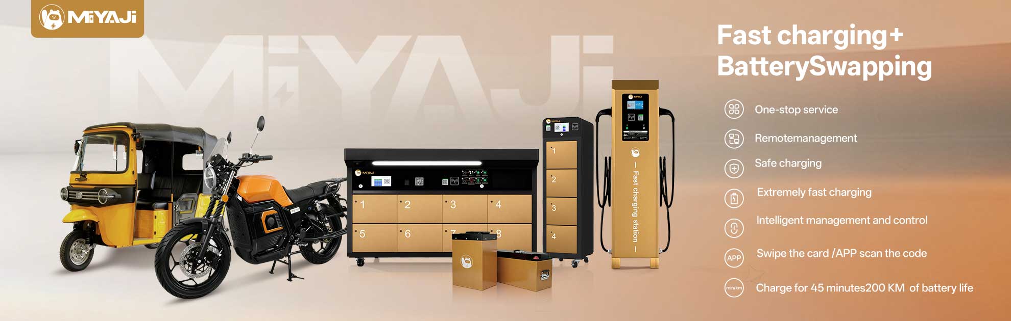 As the global new energy mobility wave surges, fragmented charging infrastructure, product compatibility challenges, and high implementation barriers have become common pain points in the industry. MIYAJI, a one-stop solution provider with deep industry expertise, builds its foundation on source factories and focuses on customized hardware and software development. It creates a full industrial chain closed loop encompassing battery swapping, fast charging, vehicles, batteries, cloud management, and operational implementation, making global deployment of new energy mobility simple and efficient.